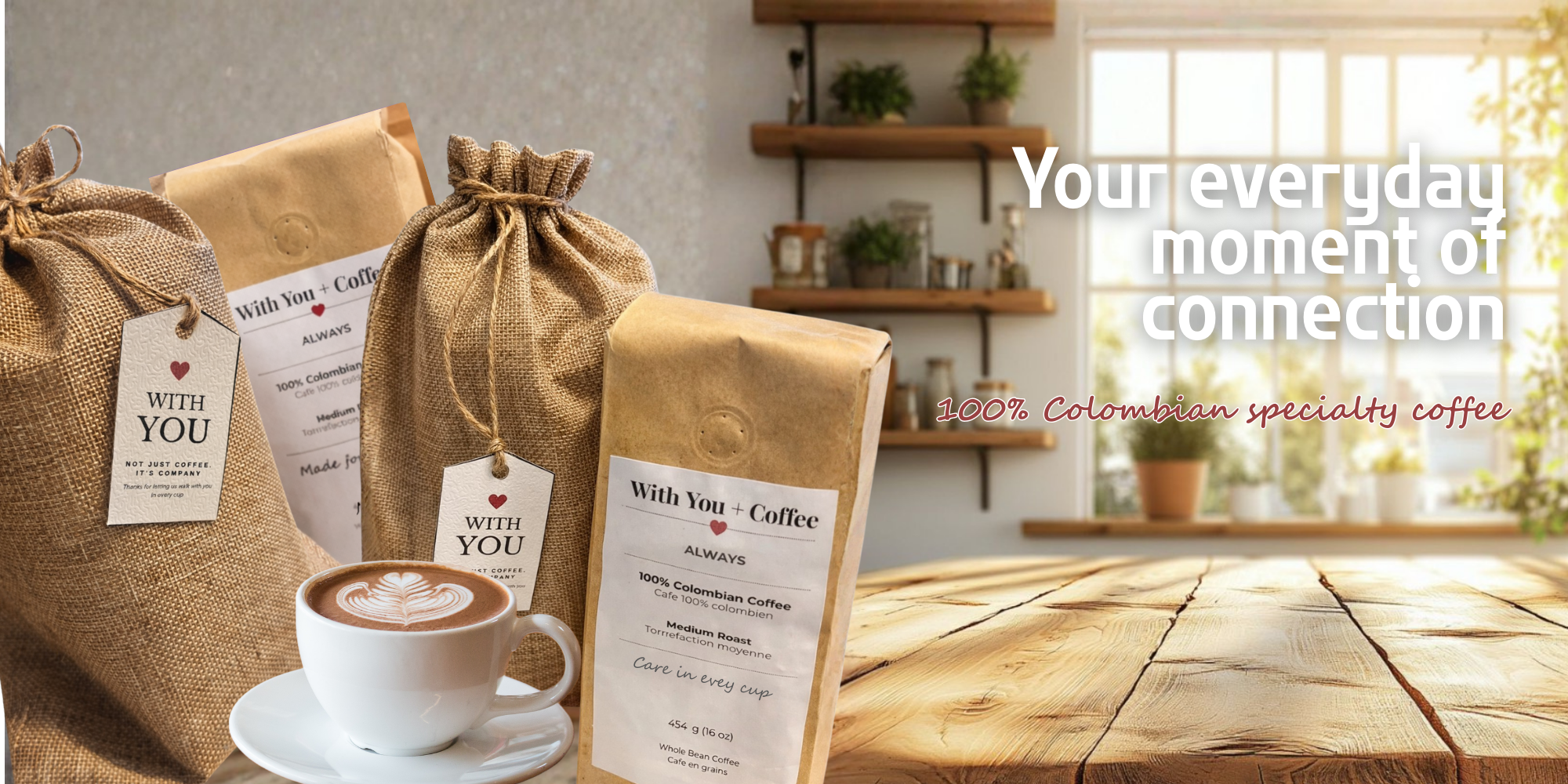 We work with 100% Colombian coffee and thoughtfully designed products, created to bring warmth, closeness, and intention into everyday life.